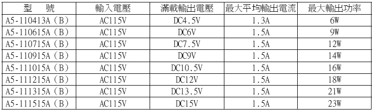 A5 系列-IC 式單輸出 AC-DC 電源變壓器