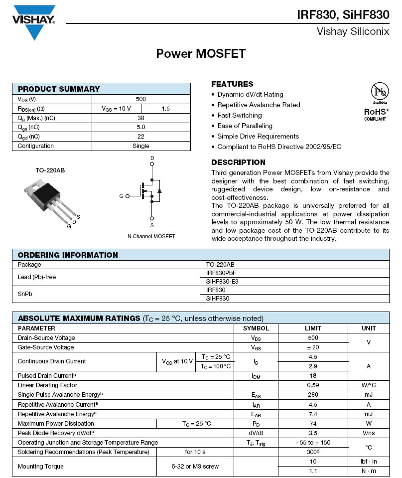 VISHAY-IRF830PBF