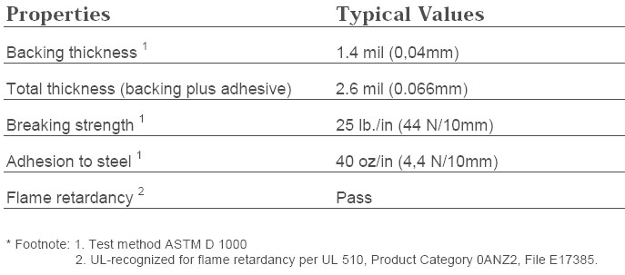 3M 1194 Tape consists of a 1-ounce deadsoft copper foil backing and an aggressive nonconductive pressure-sensitive acrylic adhesive.