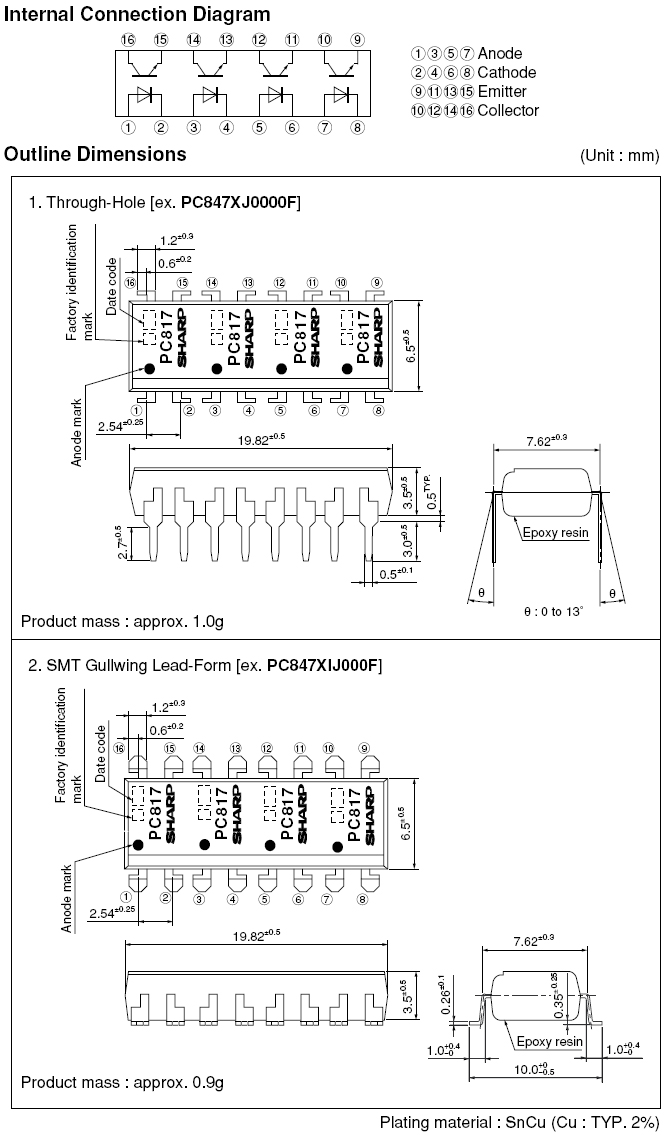 1. Recognized by UL1577 (Double protection isolation), file No. E64380 (as model No. PC817)