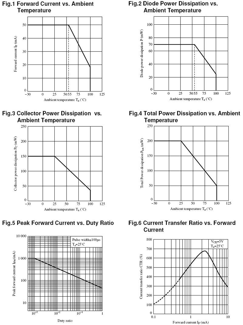 4. Current transfer ratio (CTR : MIN. 50% at IF=5mA, VCE=5V)