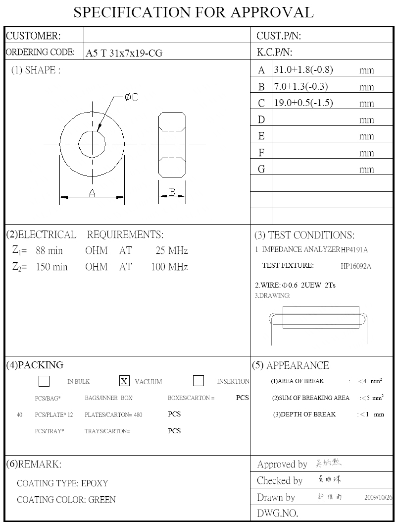 綠色圓環型鐵粉芯 外徑31*內19*厚7mm