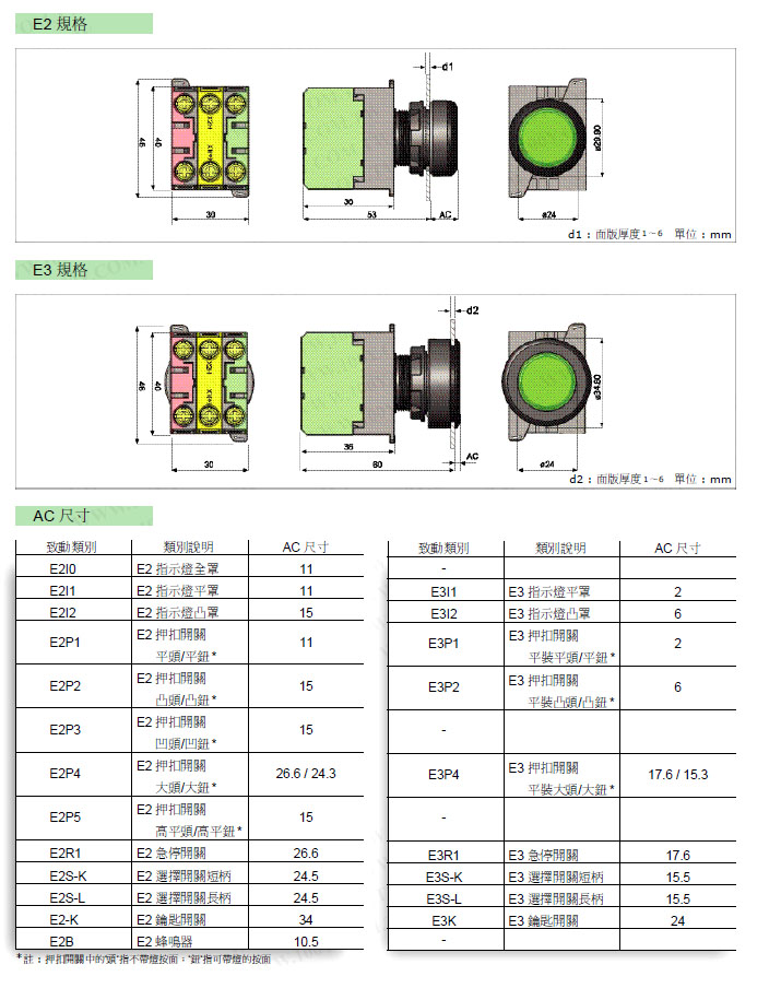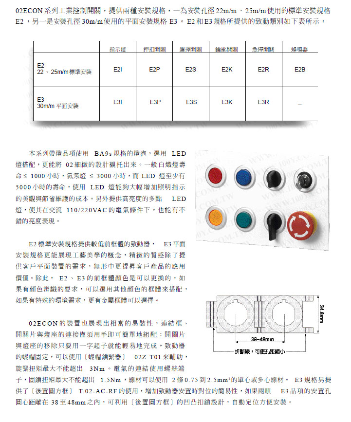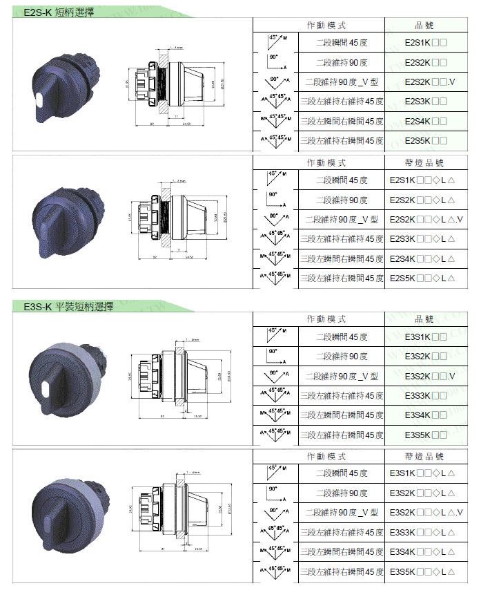 ema-E2S3K1A 22m/m選擇開關短柄,三段左A45右A45,黑1NO