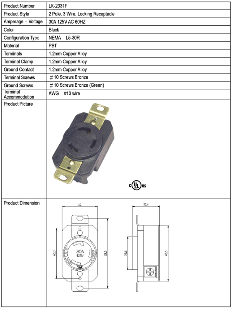 LK-2331F L5-30R 美國插座