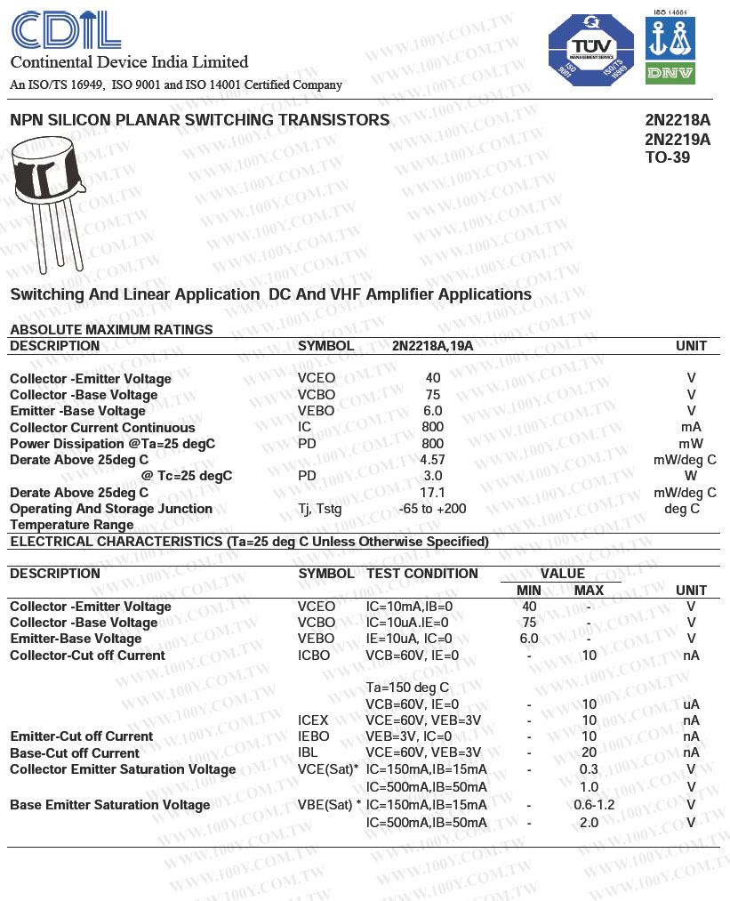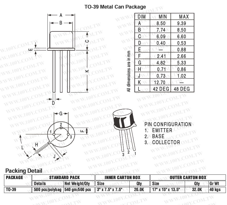 3PIN/TO-39 (ROHS) 雙極小信號