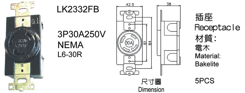 L6-30R 引掛式插接器 (電木) 3P30A / 250V