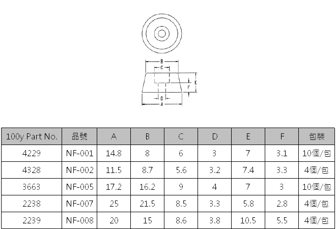 腳墊外徑11.5內3.2H(ROHS)(不帶墊片)
