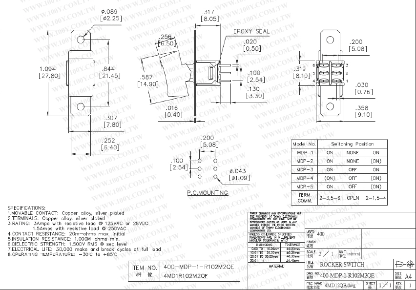 蹺板開關 ON-ON DPDT 6P
