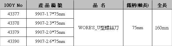 • 開口螺絲刀1.7mm、2.0mm、2.3mm、2.6mm指的是刀頭開口的間距