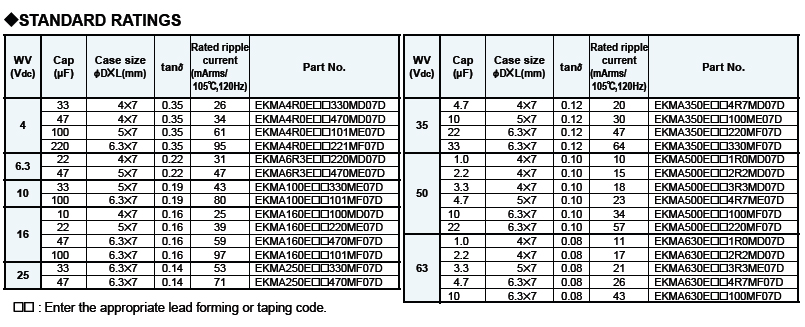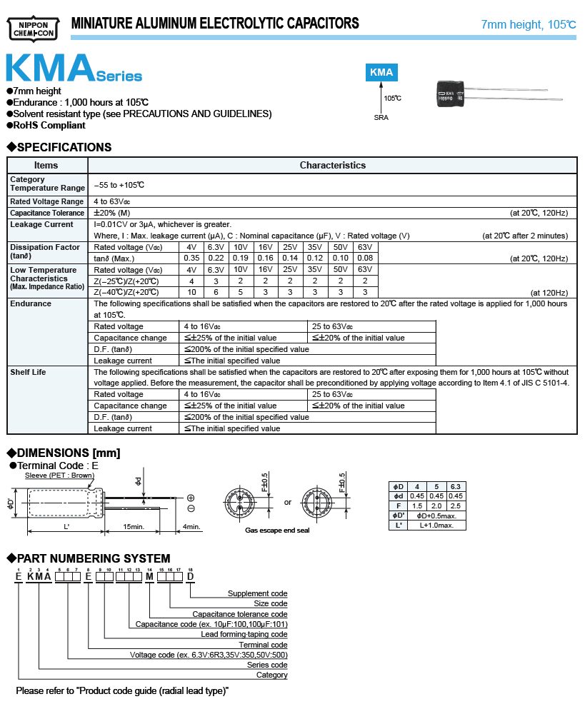 KMA-100uF/6.3V ±20%