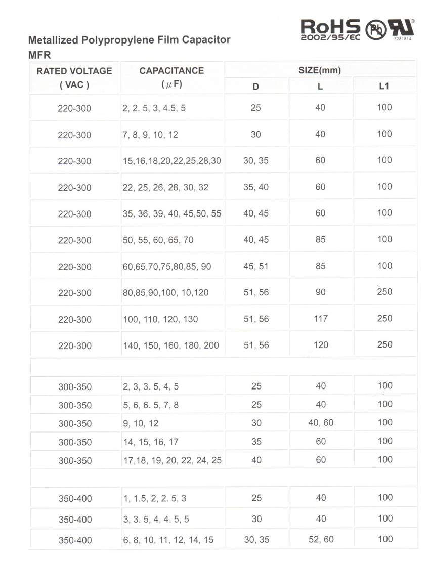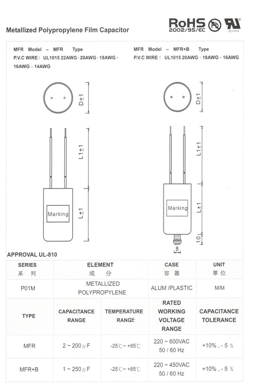 P01M-MFR-25uF/250Vac