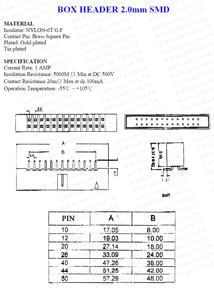 44P SMD公座 Pitch:2.0mm【ROHS】