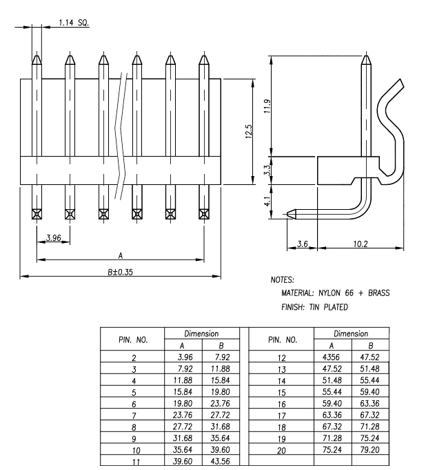 | 100y Part No. | 品號 | Pins | Pitch | 角度 |