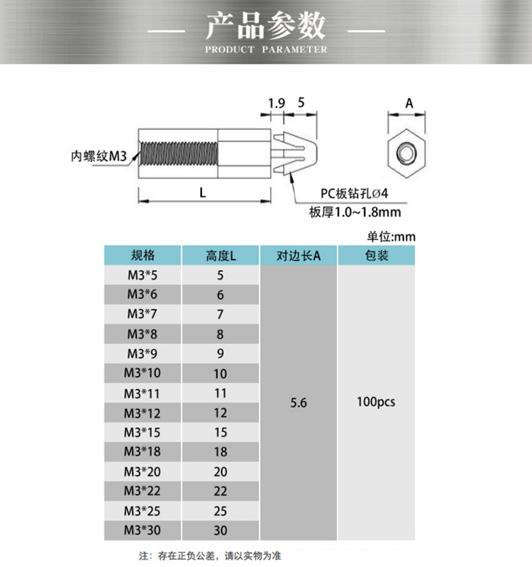 塑膠支撐柱-飛機頭-MF-M3*12+6.9-W