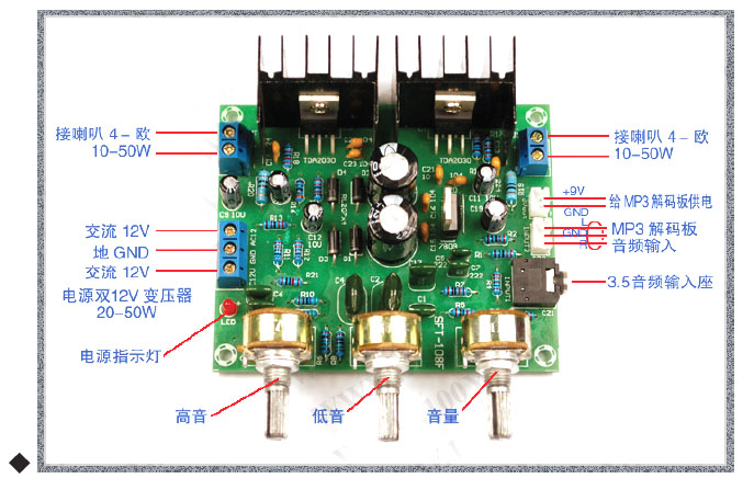 發燒級TDA2030 A 成品功放板 HIFI 2.0 雙聲道15W+15W 相容LM1875 ◆ PCB印刷電路板規格:88*73*1.6mm;成品總高:32mm.電位器間距27mm。 ◆ 輸出功率:電壓±12V揚聲器阻抗8Ω時輸出功率約15Wx2。 ◆電壓範圍±9~±15V,選配雙12V功率20W以上(或1.5A以上)變壓器,如果加大電壓(最高不超15V)或喜歡聽大聲的請根據實際情況更換大的散熱器。