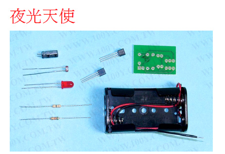 建議:使用30W 烙鐵,60%焊錫,套件裝配之前,務必清點零件數量,確認無誤後再開始裝配工作。焊接過程中,應防止過熱,電晶體及IC 都很怕高溫,焊接時烙鐵勿擱置過久。焊錫的使用量過多過少,都會造成線路上的不良。請先焊IC 腳座再插入IC。電路說明:Cds 的電阻值會受光線的強弱而同時變化大小。所以到了晚上當周圍變暗時,Cds 的電阻值會變大,使Q1;Q2 開始能夠自動的使開關接通,使LED(發光二極體)周期性的發光 熄滅,而這個亮滅的頻率是依據電阻值(R1)和電容器(C1)之大小變化。假如使用電容量大者。則亮滅的速度就變慢;反之,則變快。使用說明:這個裝置使用在夜間或是光線微弱的地方,在電路動作時,LED會?生閃爍的效果,就有如螢火蟲一般。另外此裝置也可放於電燈開關處,在晚上時可很容易找到開關的所在,或是放在黑暗中需要指示的地點。