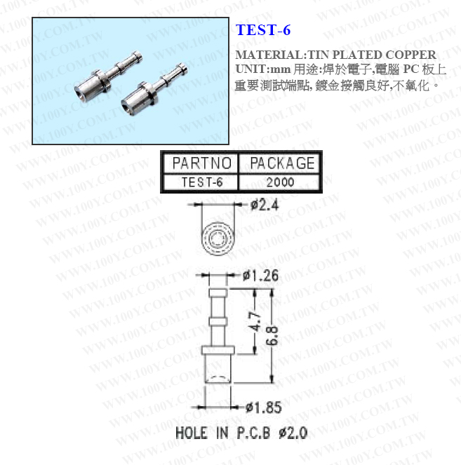 2.0mm 測試針(鍍鎳)