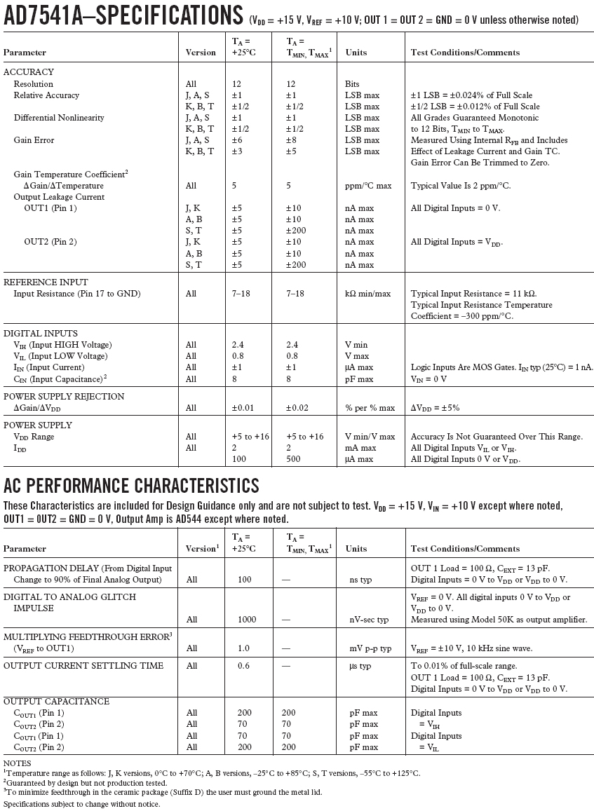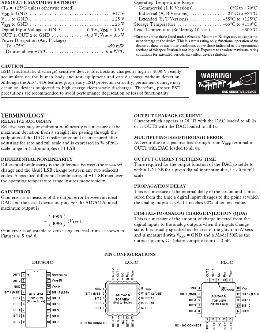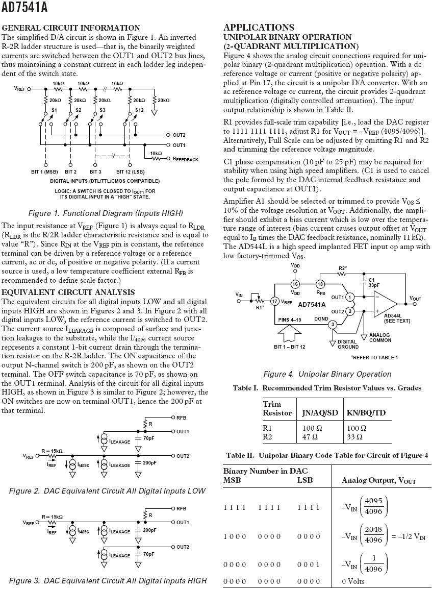 AD7541A: 12位CMOS乘法DAC