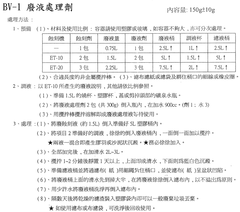 BV-1 廢液處理劑 (150g)