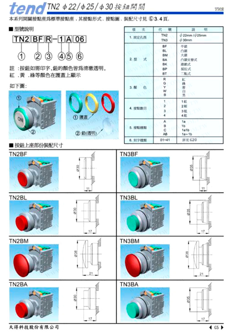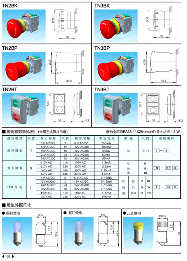 TEND-TN3BLR-1C φ30mm 凸頭按鈕開關 1a1b 紅