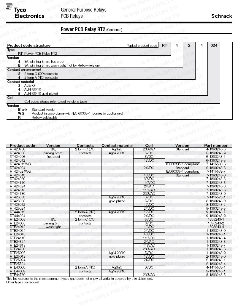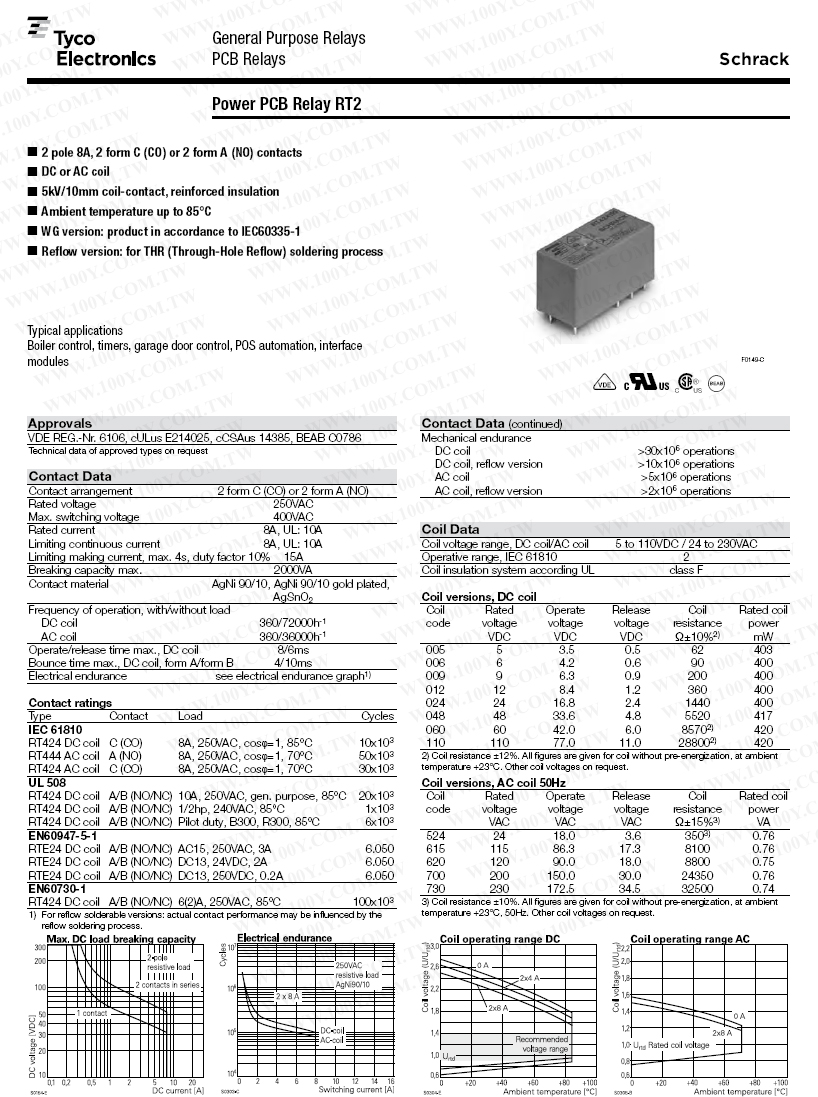 通用繼電器 DPDT 8A 230VAC 32.5 kOhm 740mW