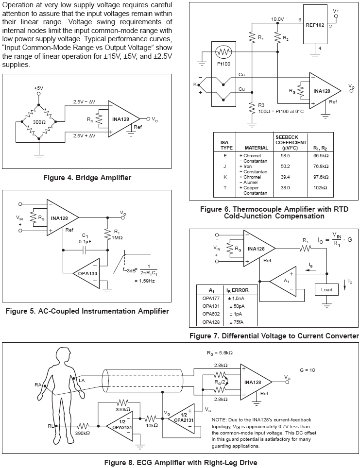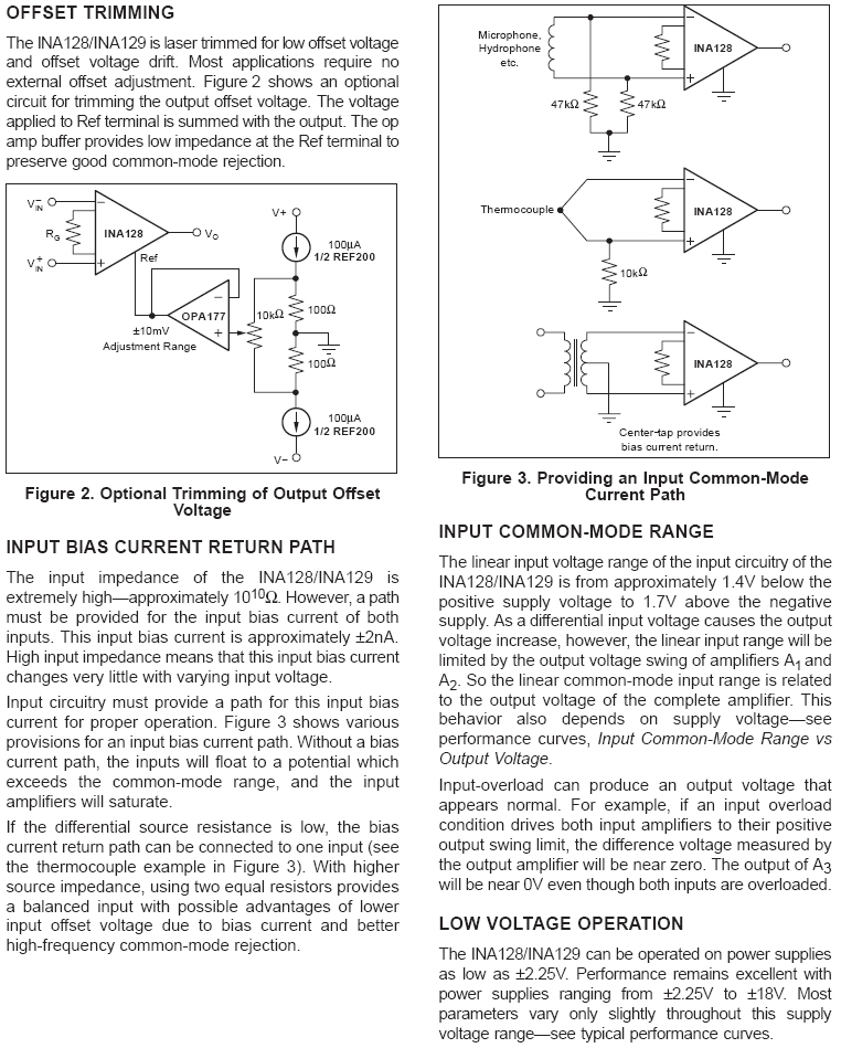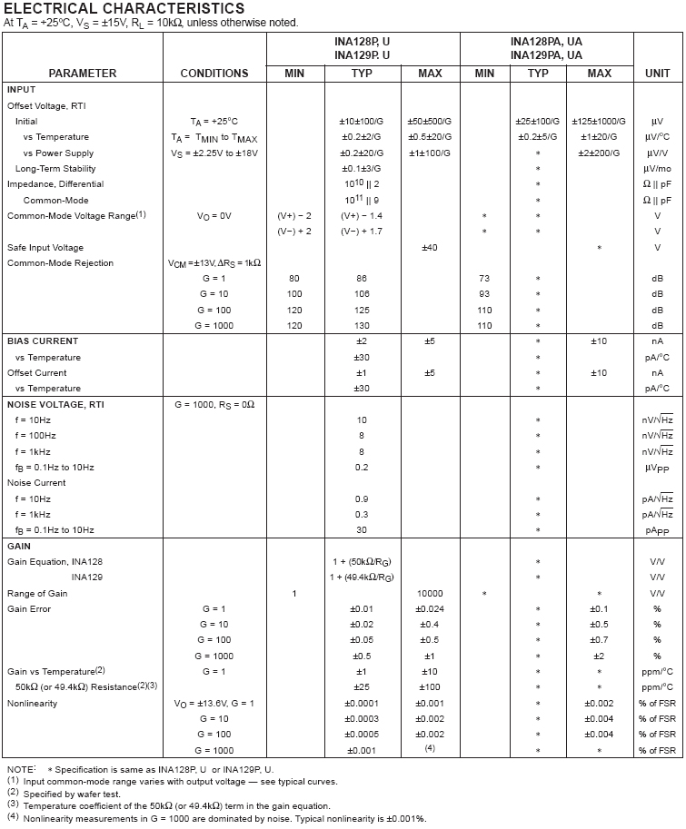 The INA128 and INA129 are low power, general purpose instrumentation amplifiers offering excellent accuracy. The versatile 3-op amp design and small size make them ideal for a wide range of applications. Current-feedback input circuitry provides wide bandwidth even at high gain (200kHz at G = 100).