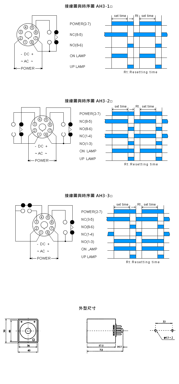 | 50547 | AH3-2B-220VAC | 3S,30S,3M,30M | 220VAC | 220VAC/5A |