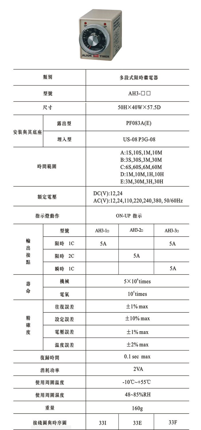 | 50537 | AH3-2A-110VAC | 1S,10S,1M,10M | 110VAC | 110VAC/5A |