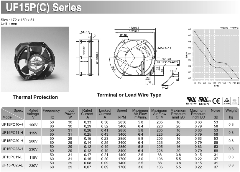 AC 風扇 230V 0.12A 29W 172*150*51mm