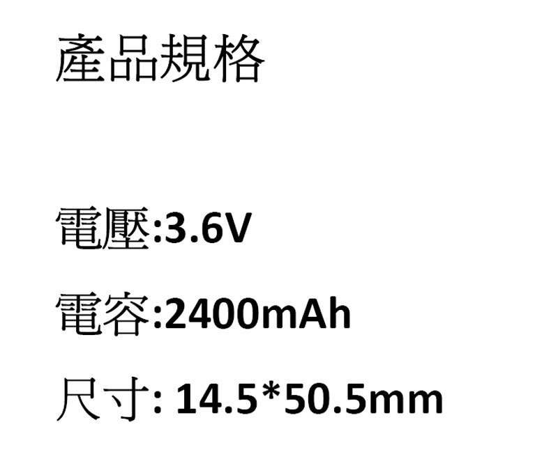 3.6V 2400mAh 鋰-亞硫酸氯電池