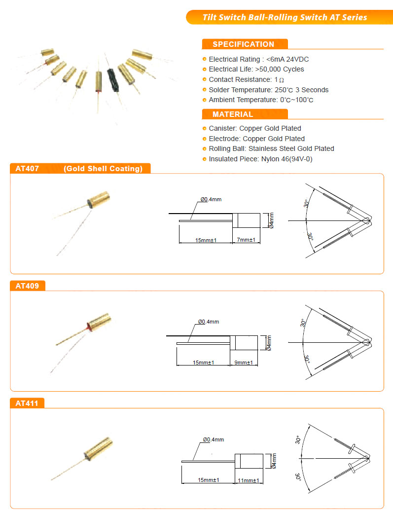 滾珠開關 φ4mm*7mm 1Ω/ < 6mA,24VDC (1顆滾珠)