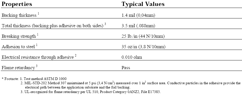 3M 1182 Tape consists of a 1-ounce deadsoft copper foil backing that is coated on both sides with a unique electrically conductive pressuresensitive acrylic adhesive.