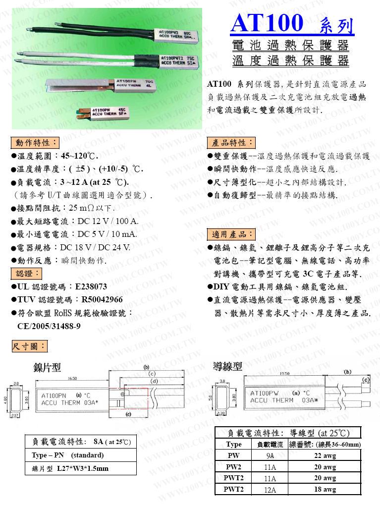 溫度/電池保護器100±5℃