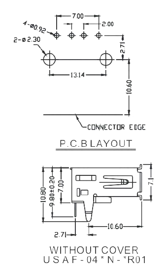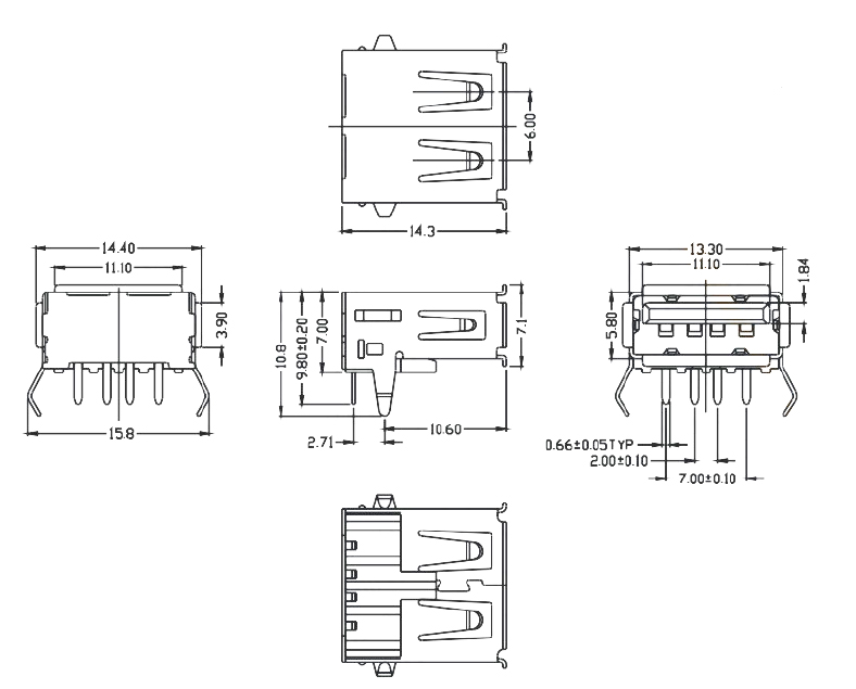 USB Jack DIP 90° 1Female*4P (ROHS)