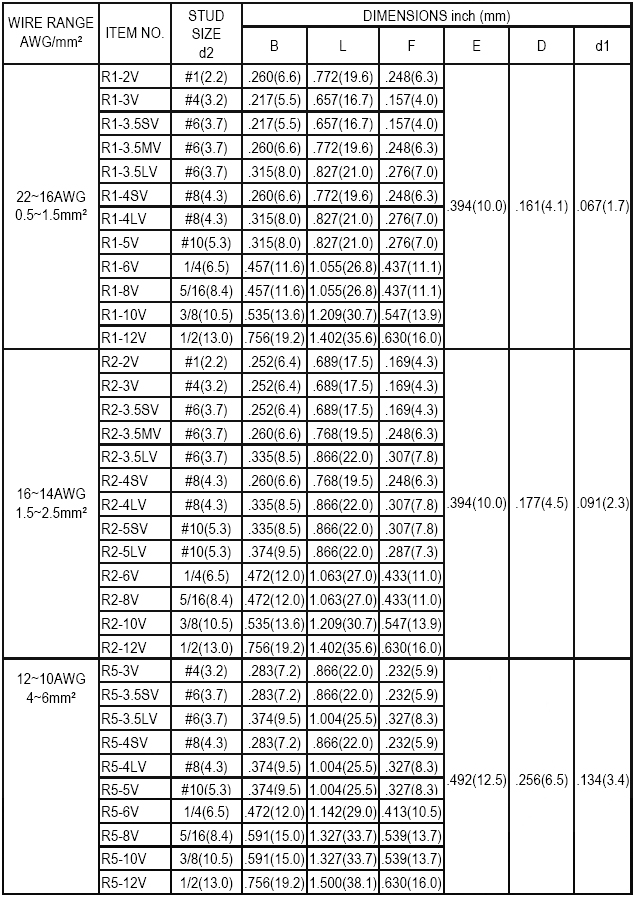 中空圓形端子22-16 AWG【ROHS】