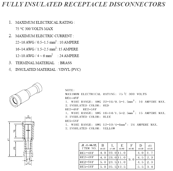 護套子彈形母22-16AWG(ROHS)