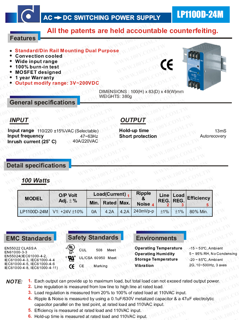 100W單組交換式電供器(ROHS)