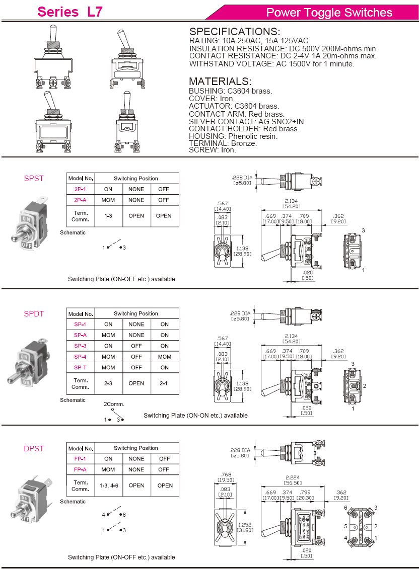 | 57053 | YL7-SP3-A3-B2-H106 | 15A/125VAC | 3P3 | ON-OFF-ON | 金屬色 |