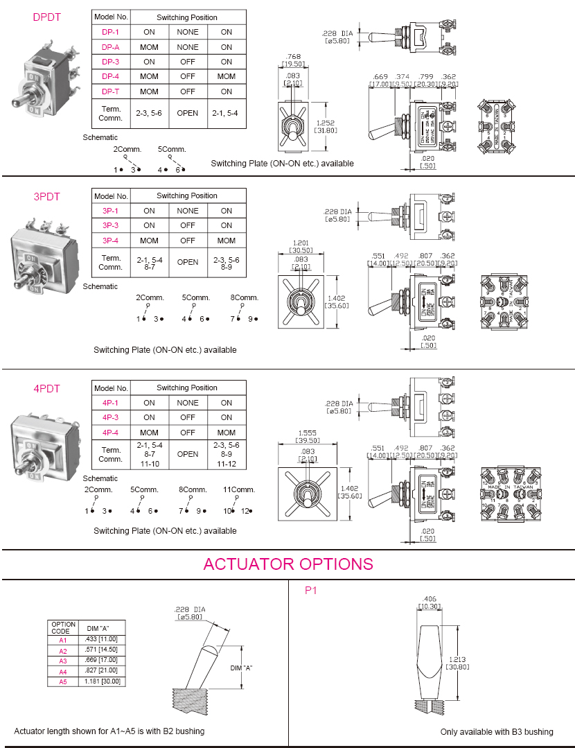 | 72309 | YL7-DP1-A3-B3-H1-P-06 | 10A/250Vac | 6P2 | ON-None-ON | 黑色 |