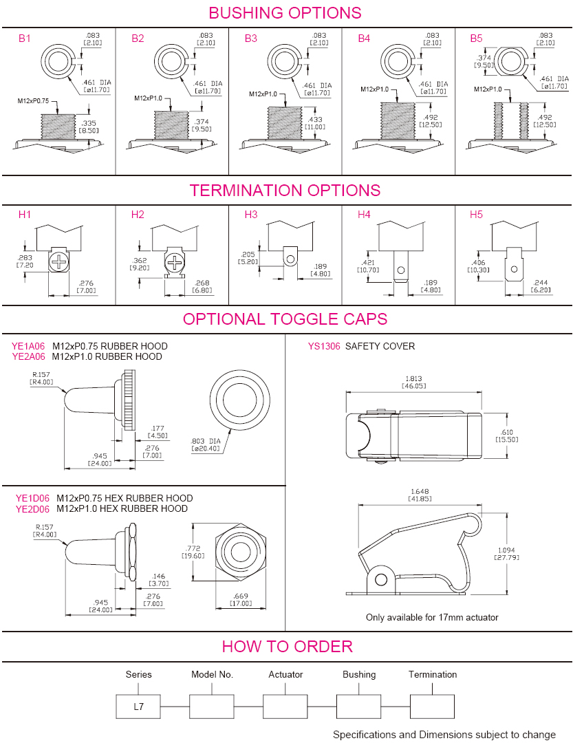| 53911 | YL7-A-12-3-A3-B3-H106 | 15A/125Vac | 6P3 | ON-OFF-ON | 黑色 |