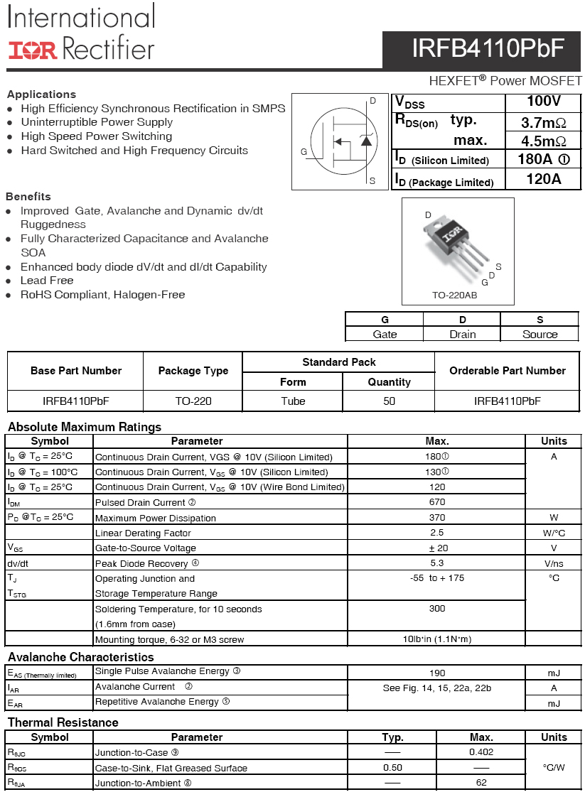 IR- IRFB4110PBF