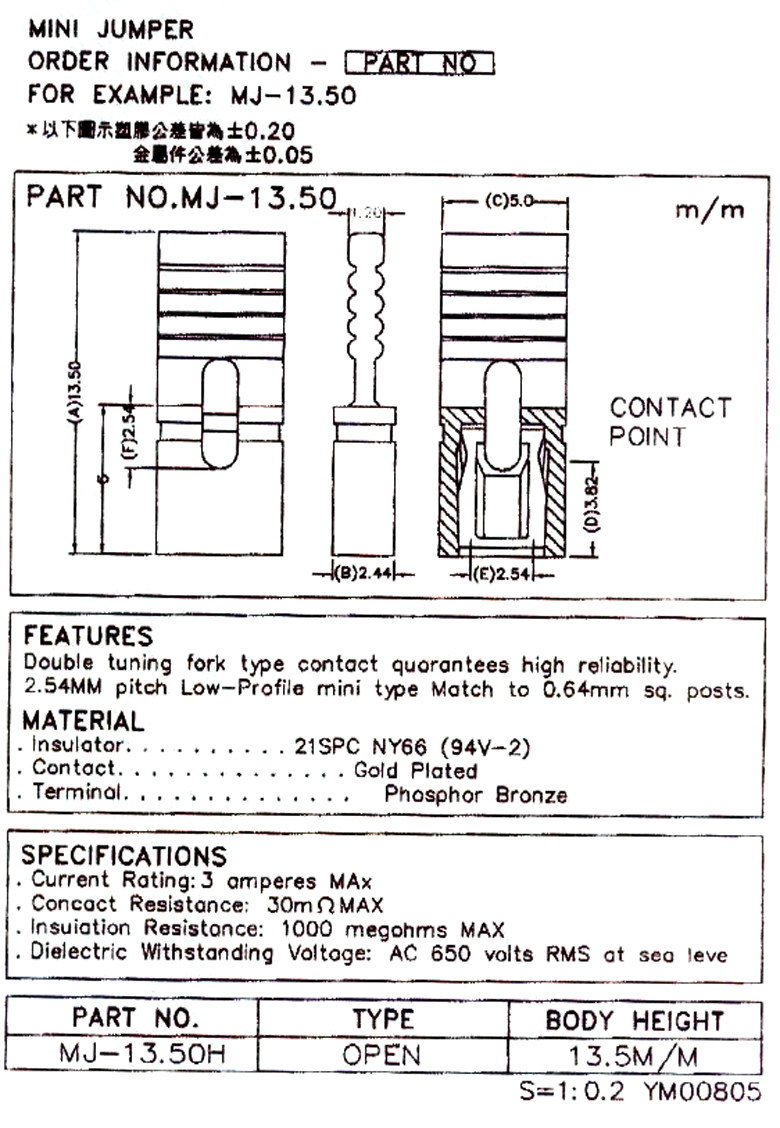 P:2.54 長柄跳線帽-短路帽 H: 13.5mm 綠色【ROHS】