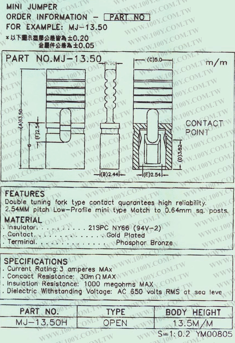P:2.54 長柄跳線帽-短路帽 H: 13.5mm 紅色【ROHS】