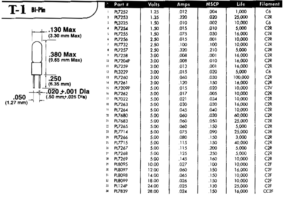 3mm鎢絲燈T-1 PL7264 TB-6V