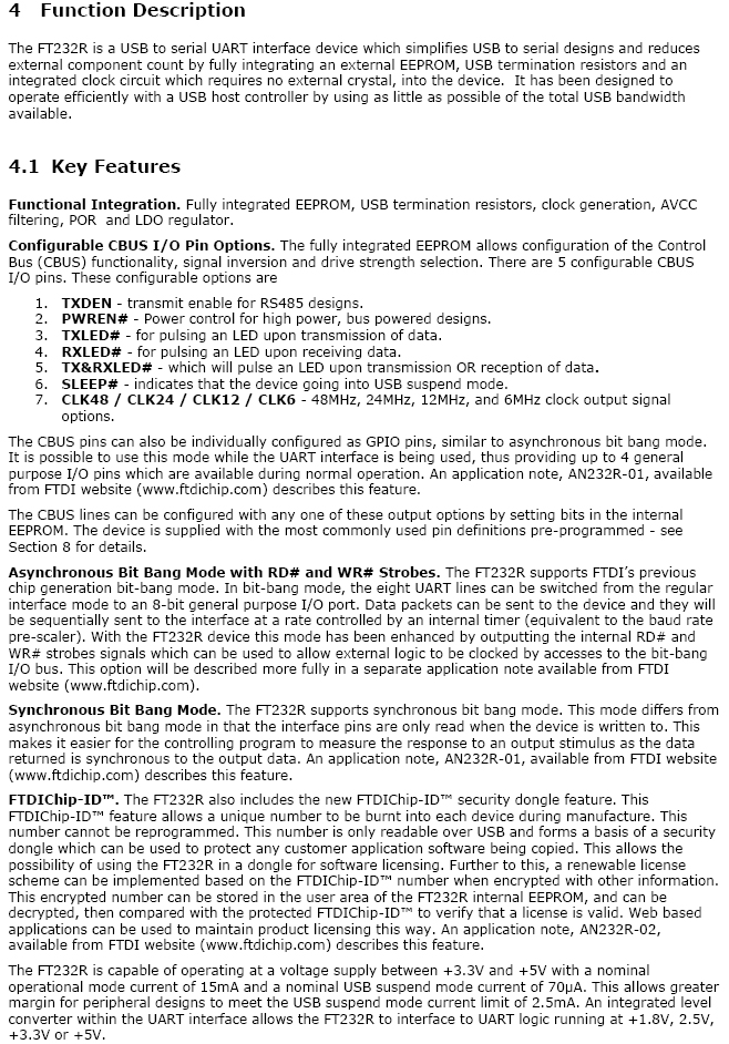 ●Unique USB FTDIChip-ID™ feature.