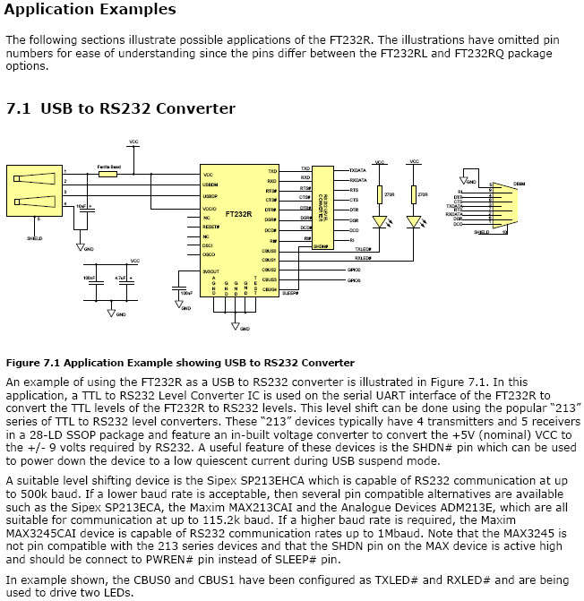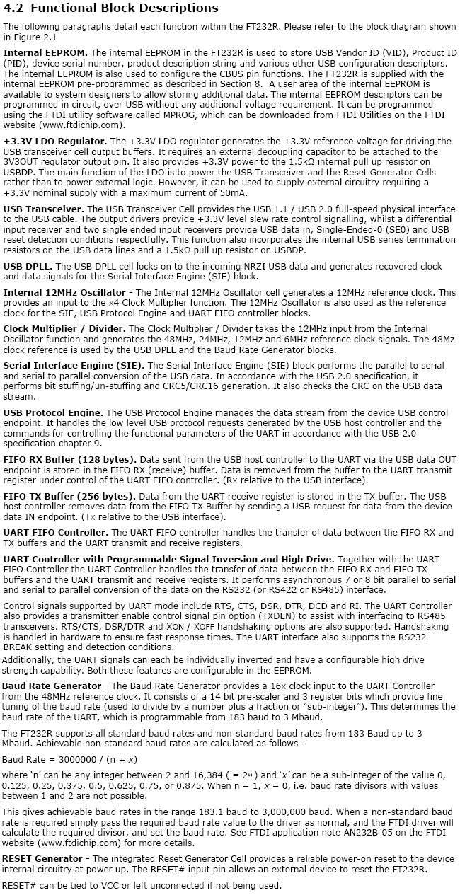 The FT232R is a USB to serial UART interface with the following advanced features: