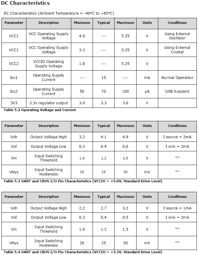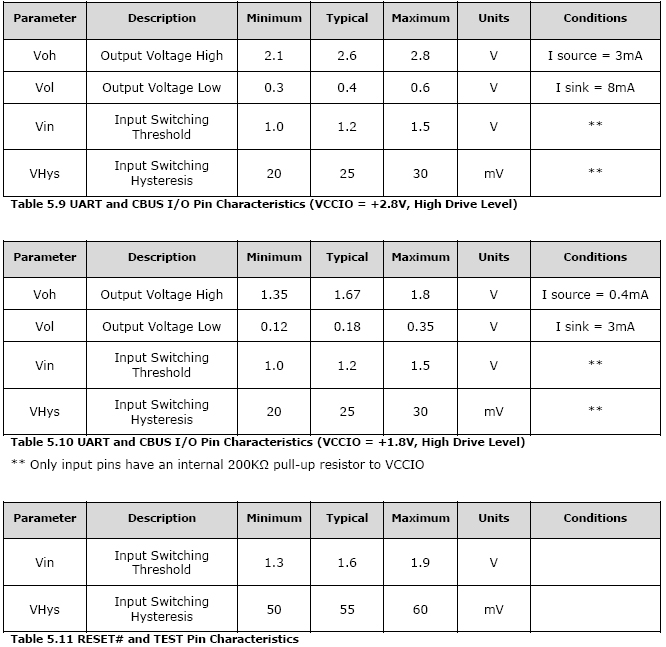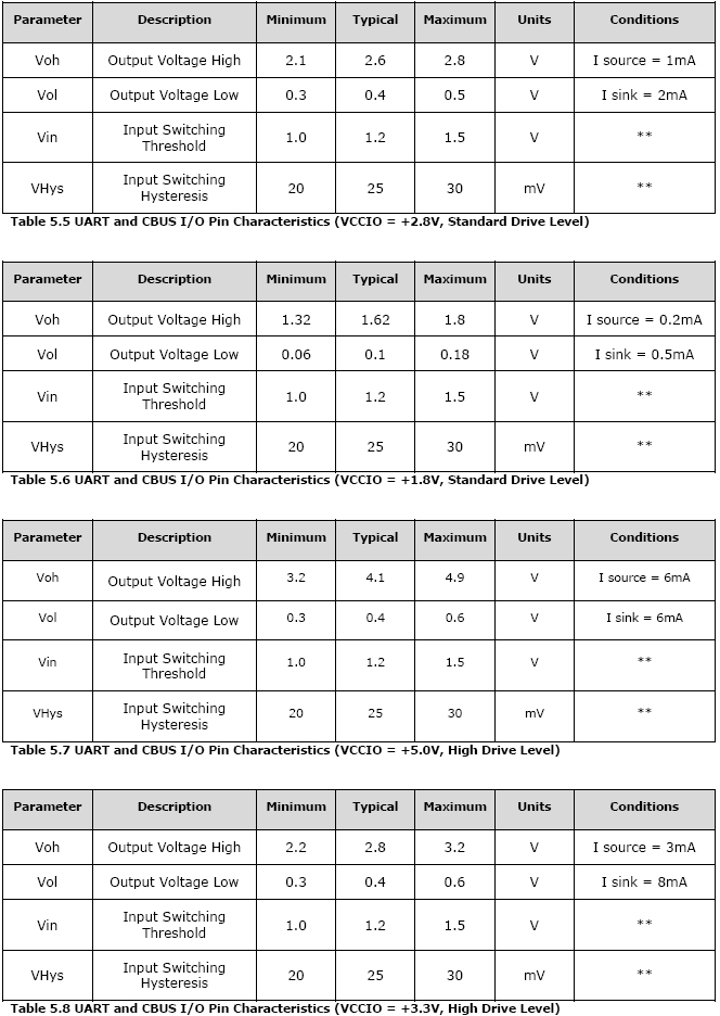●Integrated level converter on UART and CBUS for interfacing to between +1.8V and +5V logic.