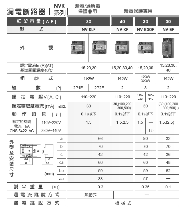 ●額定電流:30A(15A.20A適用),40A(15A.20.30A適用)