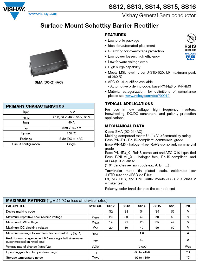 DO-214AC (SMA) 肖特基二極管