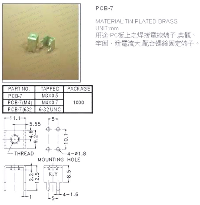 PC板焊接端子 (1000pcs/包) (ROHS)